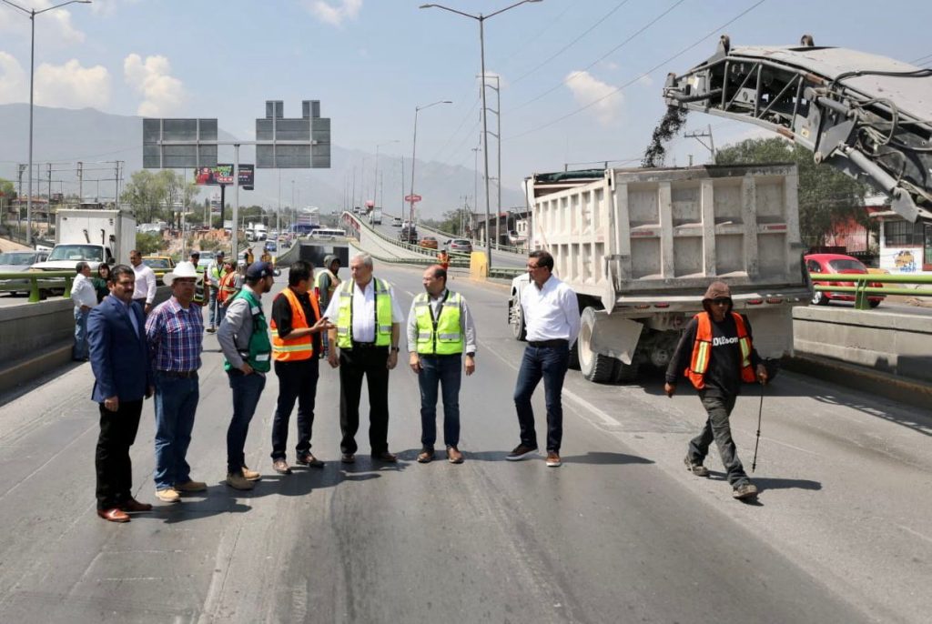 “En este tramo lo que decidimos, en lugar de bachear, es hacer un recarpeteo completo en este tramo del periférico Luis Echeverría con el fin de dejarlo en óptimas condiciones, más eficiente y más seguro para la circulación vial”, afirmó Fraustro Siller, el cual estuvo en el recorrido acompañado del tesorero municipal, Juan Carlos Villarreal Garza y Virgilio Verduzco Echeverría, Director de Infraestructura y Obra Pública.