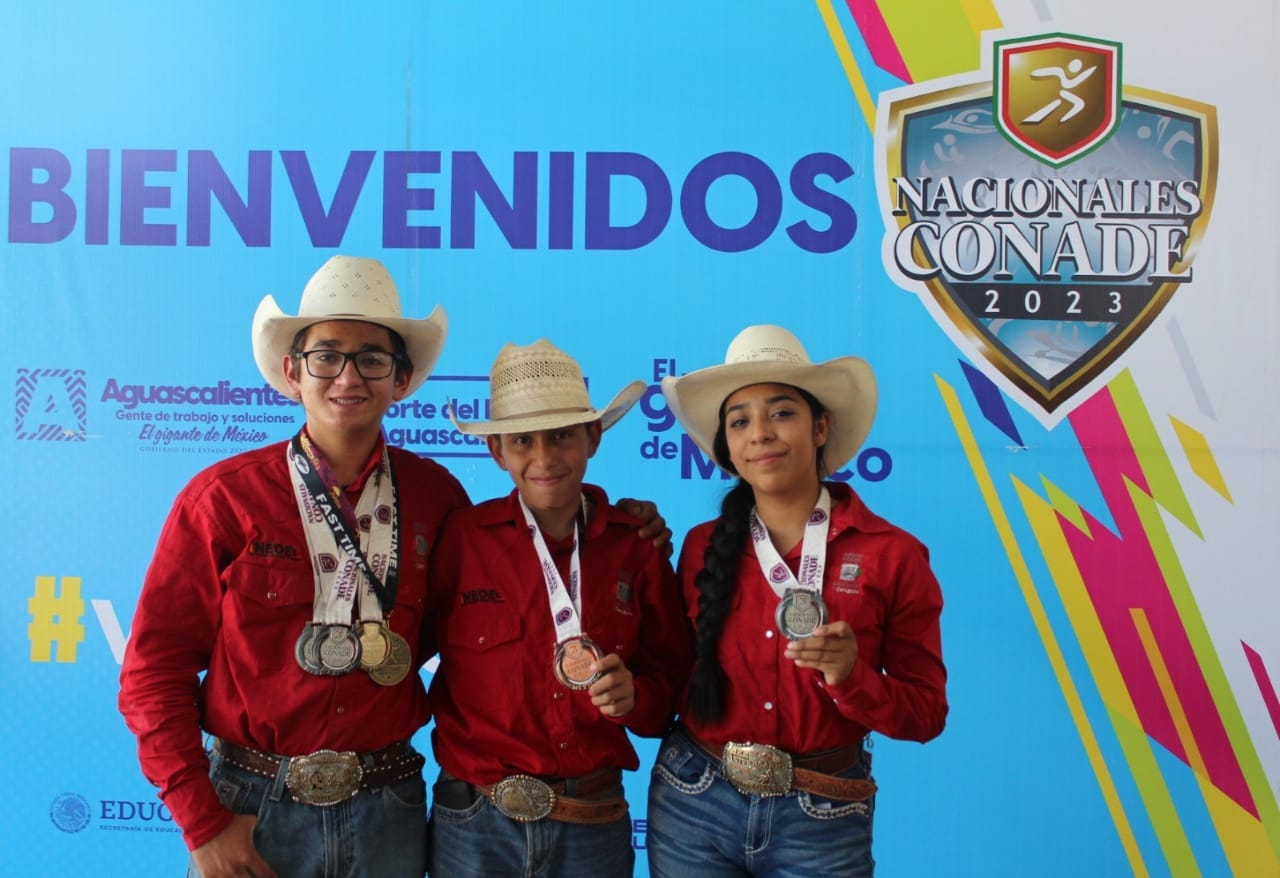 Aguascalientes,.- Tres vaqueros coahuilenses alcanzaron el podio en el Rodeo de los Nacionales CONADE 2023, disciplina que se llevó a cabo en esta ciudad y en donde se obtuvieron cuatro medallas.