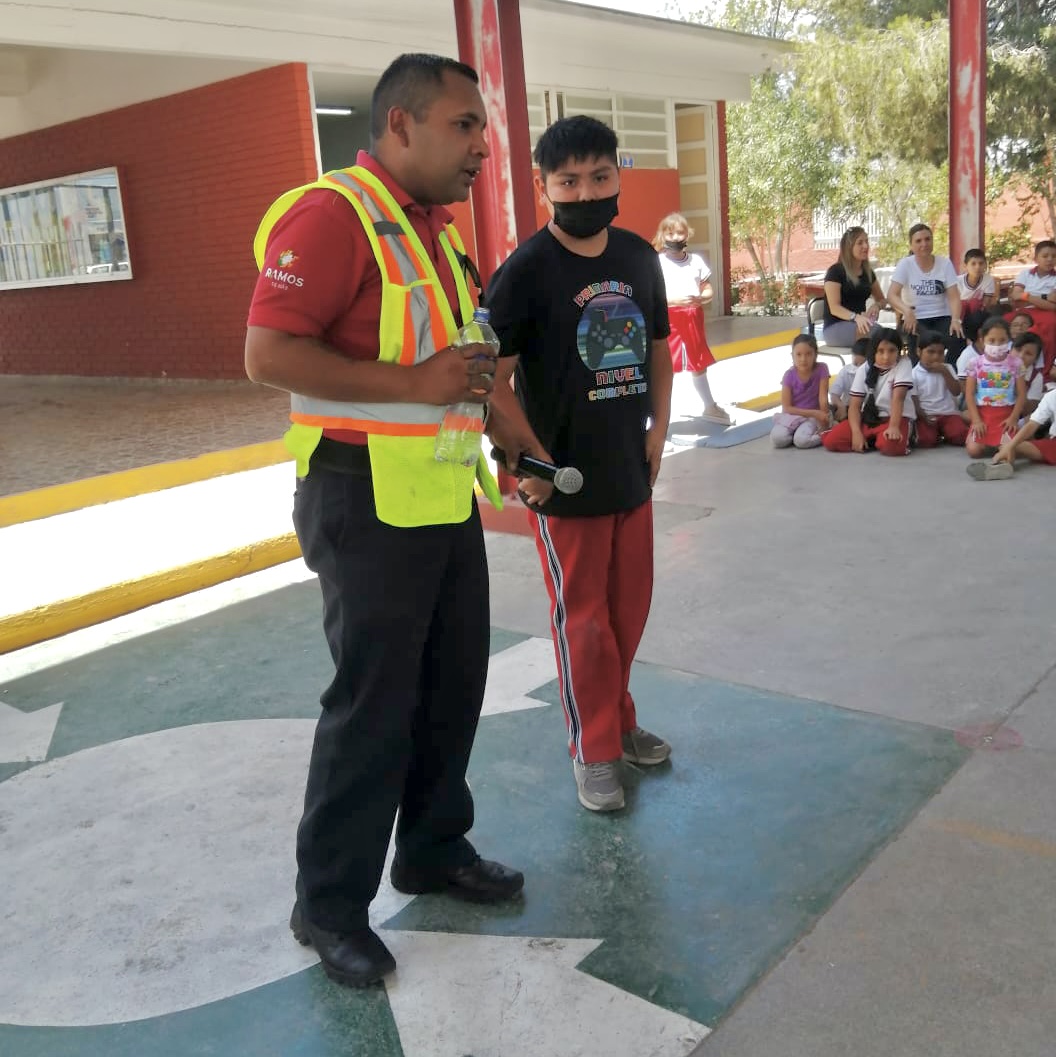 Con la finalidad de fomentar la cultura de prevención de accidentes en los planteles educativos, elementos de la dirección de Bomberos y Protección Civil en Ramos Arizpe visitaron a los alumnos y personal docente de la escuela primaria ‘Federico Berrueto Ramón’ en la colonia Eulalio Gutiérrez.