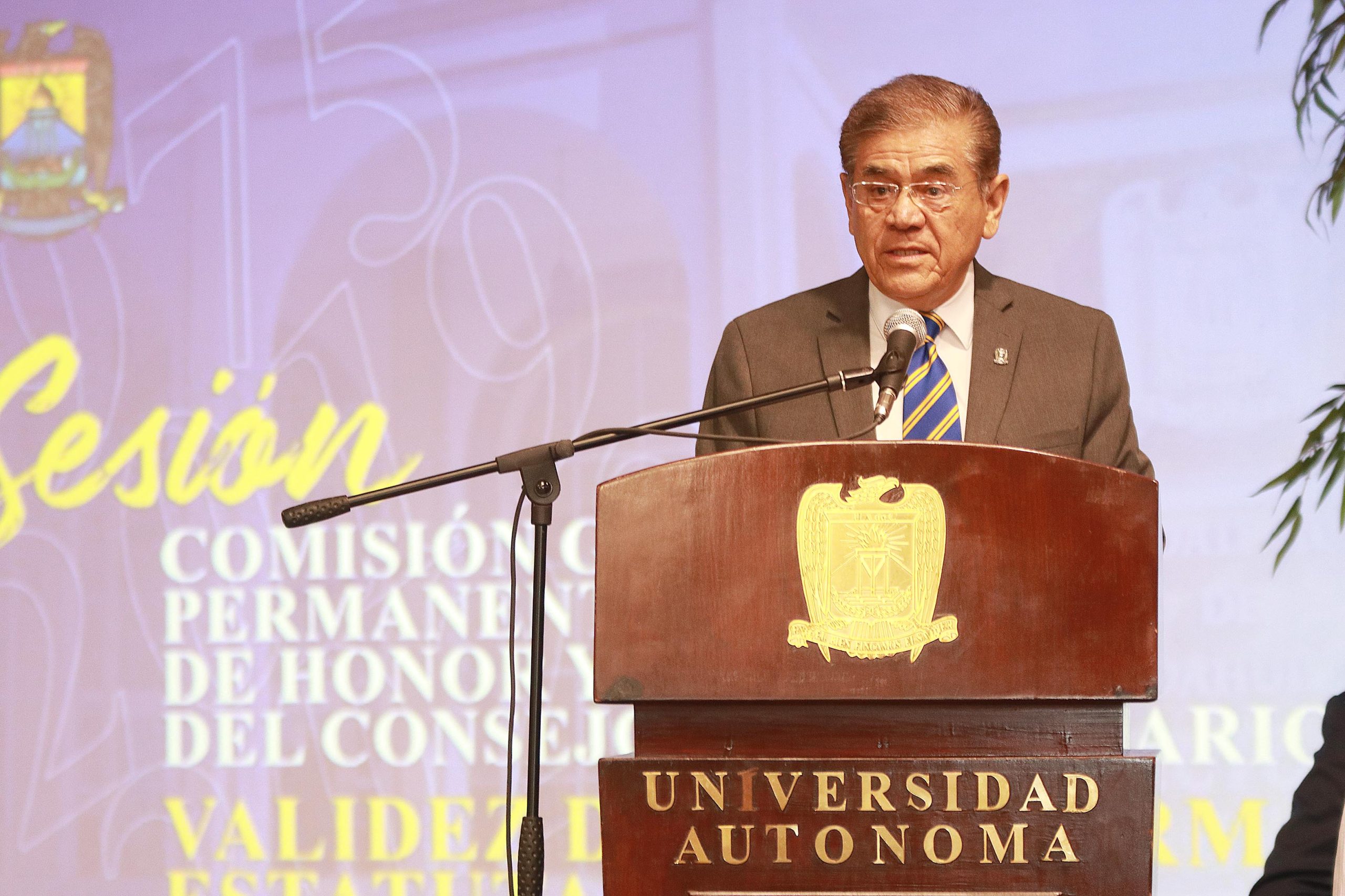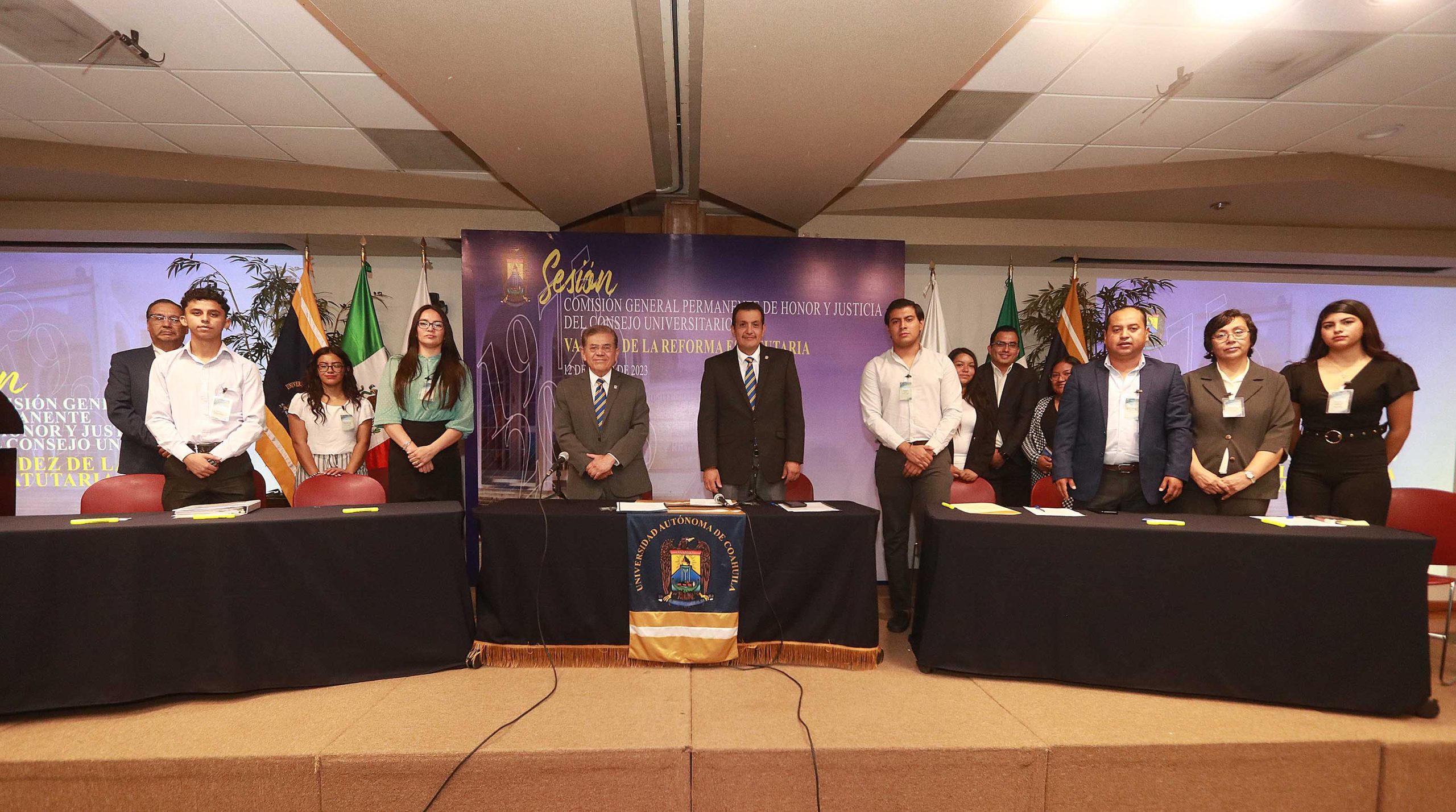La sesión se llevó a cabo en la Sala de Seminarios “Emilio J. Talamás” y fue presidida por el rector, Salvador Hernández Vélez, el secretario general, Miguel Ángel Rodríguez Calderón y los integrantes de la Comisión General Permanente de Honor y Justicia del H. Consejo Universitario.
