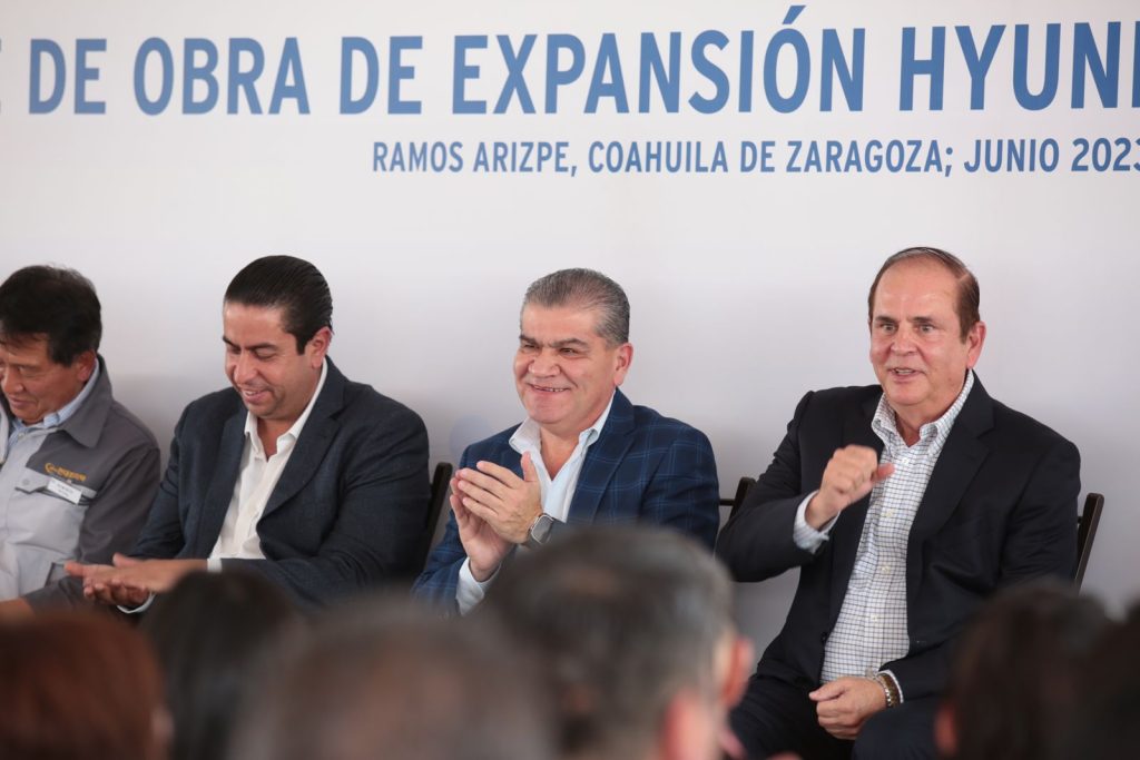 Junto al alcalde José María Morales, el gobernador Miguel Riquelme acompaña a directivos en el arranque de expansión de Hyundai Polytech México