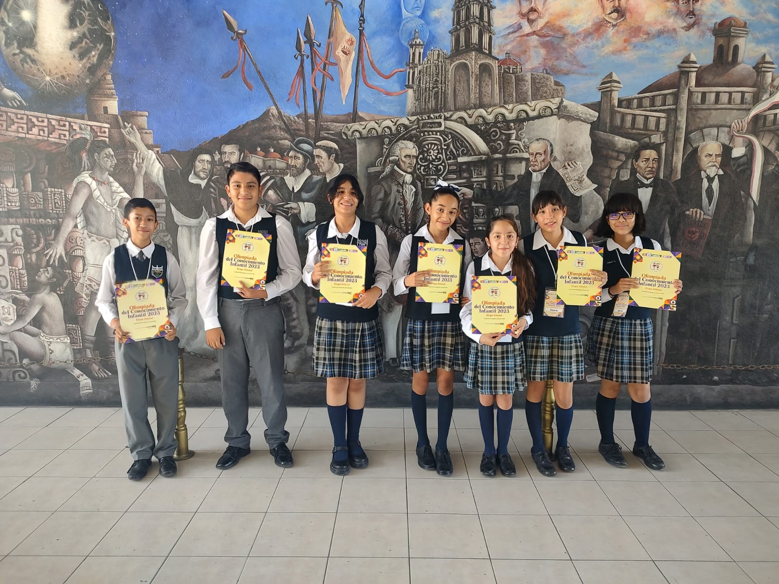 La Profesora destacó que de un total de mil 297 niños y niñas que participaron en la fase regional, etapa siguiente de la Olimpiada del Conocimiento Infantil, siete alumnos de la escuela “Presidente Benito Juárez Garcia” Turno Matutino fueron seleccionados, mismos que finalmente competirán por una beca de un año para iniciar sus estudios de secundaria el próximo ciclo escolar.