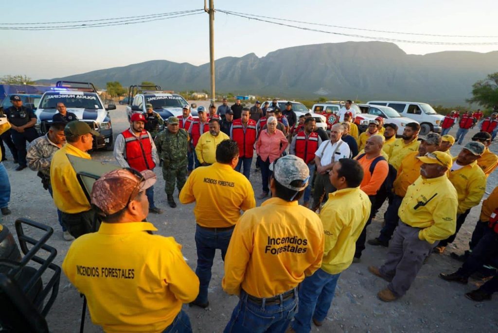 Más de 90 brigadistas se trasladaron vía terrestre a la zona siniestrada para combatir el incendio, en tanto un helicóptero Bell 212, de Nuevo León —de permitirlo las condiciones climatológicas (altas temperaturas y vientos variables)— iniciará la descarga de líquido retardante en el área siniestrada.