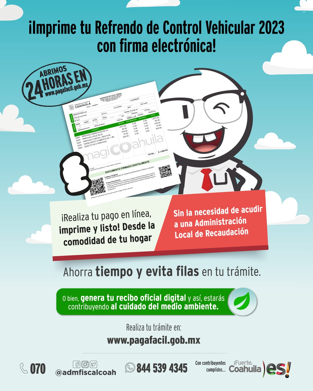 “Miles de contribuyentes coahuilenses han podido realizar su trámite de Refrendo 2023 sin tener que acudir personalmente a una Oficina de Recaudación gracias a las herramientas digitales implementadas en los servicios en línea que facilitan proceso”, explicó el Administrador Fiscal.