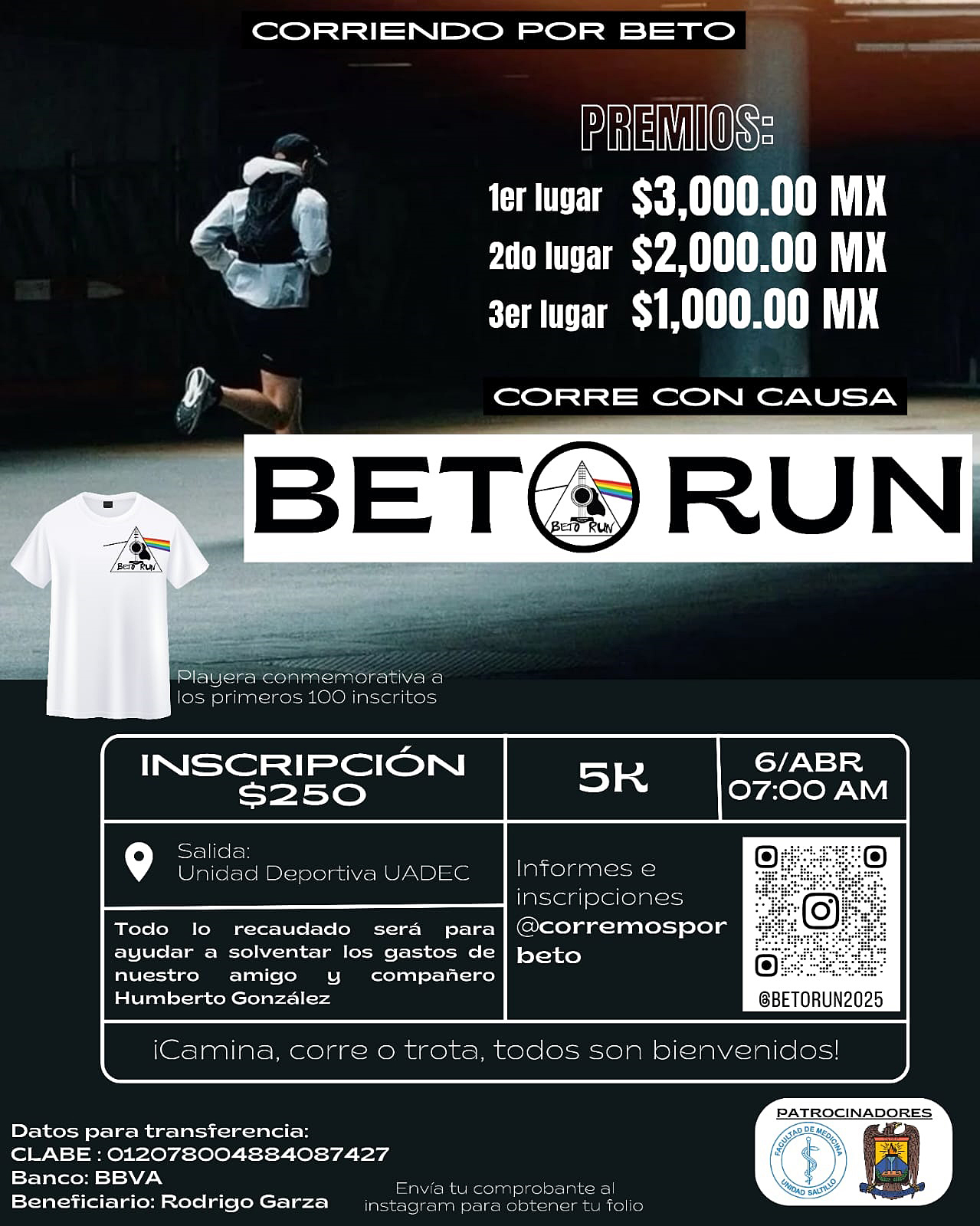 Invita sociedad de alumnos de la Facultad de Medicina de la UA de C Unidad Sureste a la carrera con causa “Beto-Run 5K”