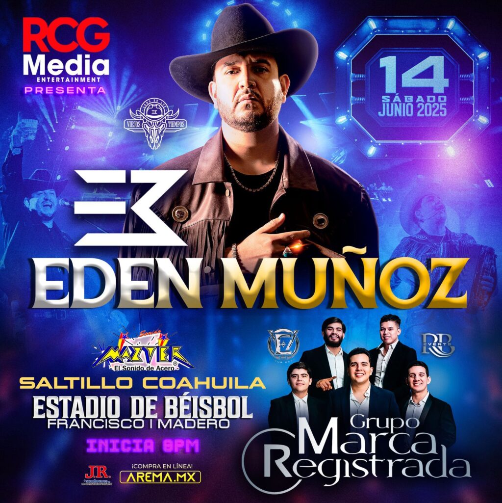 Edén Muñoz, Marca Registrada y Sonido Mazter llegarán a Saltillo el sábado 14 de junio de 2025 y este evento se llevará a cabo en el Estadio Francisco I. Madero, que puede recibir a más de 15 mil almas distribuidas entre las diferentes zonas del recinto que van desde las gradas y butacas, hasta la cancha principal.