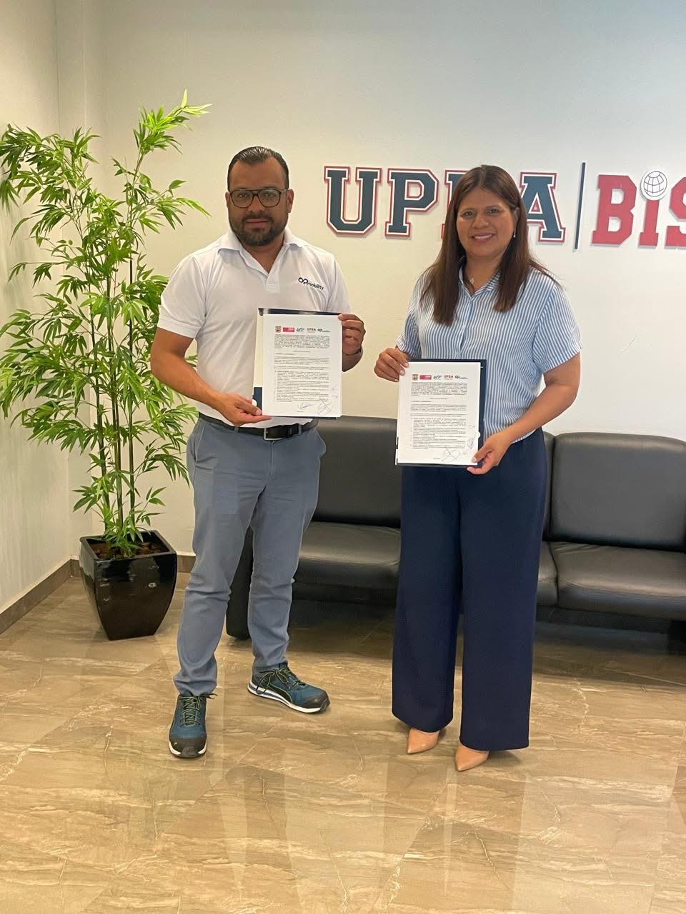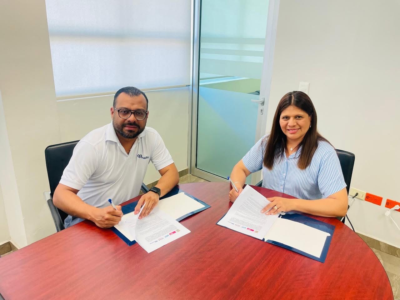 En la firma del convenio estuvieron presentes Sergio Adolfo Ovalle Medrano, Gerente de Recursos Humanos de OPmobility y Vanessa Alejandra Dávila Gaytán, Generalista de Recursos Humanos. (EDUARDO SERNA)