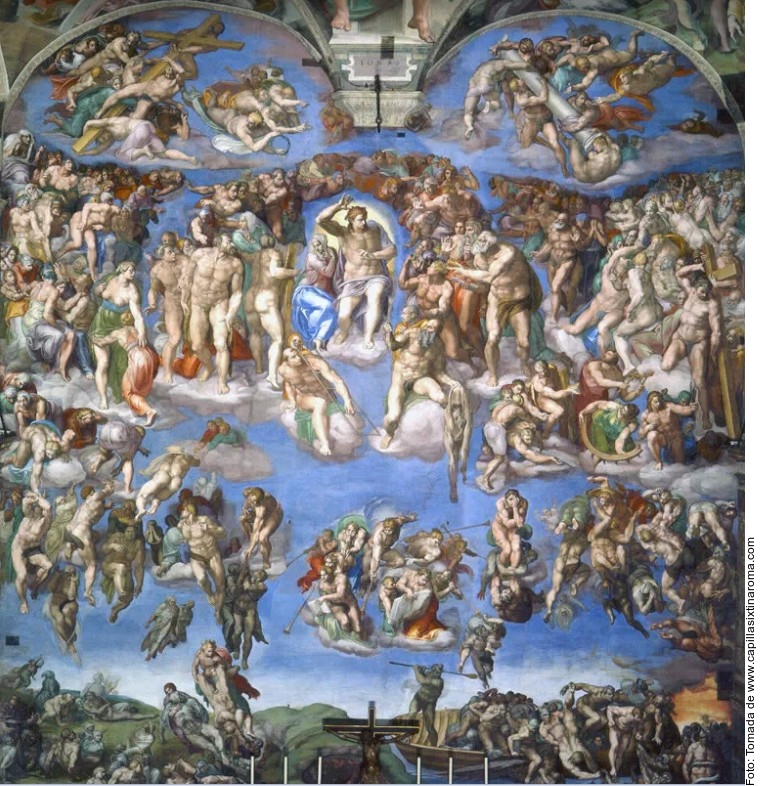 3.- Más de 20 años después, Miguel Ángel recibió el encargo de pintar el sobrecogedor Juicio final en la pared de detrás del altar, que se inauguró en 1541.