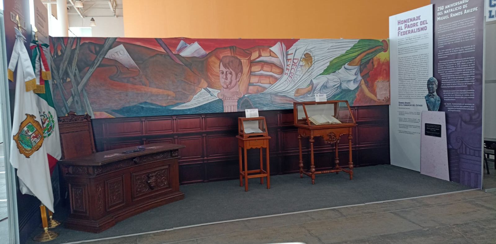 El stand del Congreso presenta una reproducción del mural en homenaje al “Padre del Federalismo”, obra del pintor coahuilense Eloy Cerecero la cual se ubica en el vestíbulo que da acceso al Salón de Sesiones del Palacio Legislativo.