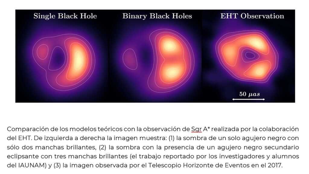 “Pensamos en poner un agujero negro entre nosotros y el centro de la galaxia. Entonces la sombra del agujero negro supermasivo en el centro de la Vía Láctea interacciona con este agujero negro secundario de tal manera que es imposible producir un tercer hot spot”, detalló Mendoza Ramos.
