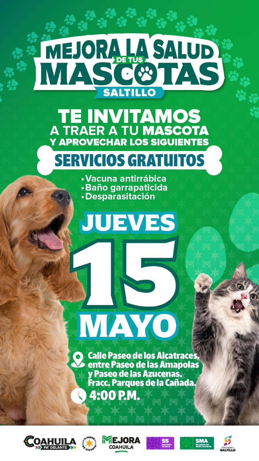 Esta iniciativa es impulsada por la estrategia Mejora Coahuila, en conjunto con la Secretaría del Medio Ambiente, Secretaría de Salud, así como el Municipio de Saltillo, permite que la comunidad pueda acceder a servicios médicos veterinarios de forma gratuita en beneficio de los consentidos del hogar.