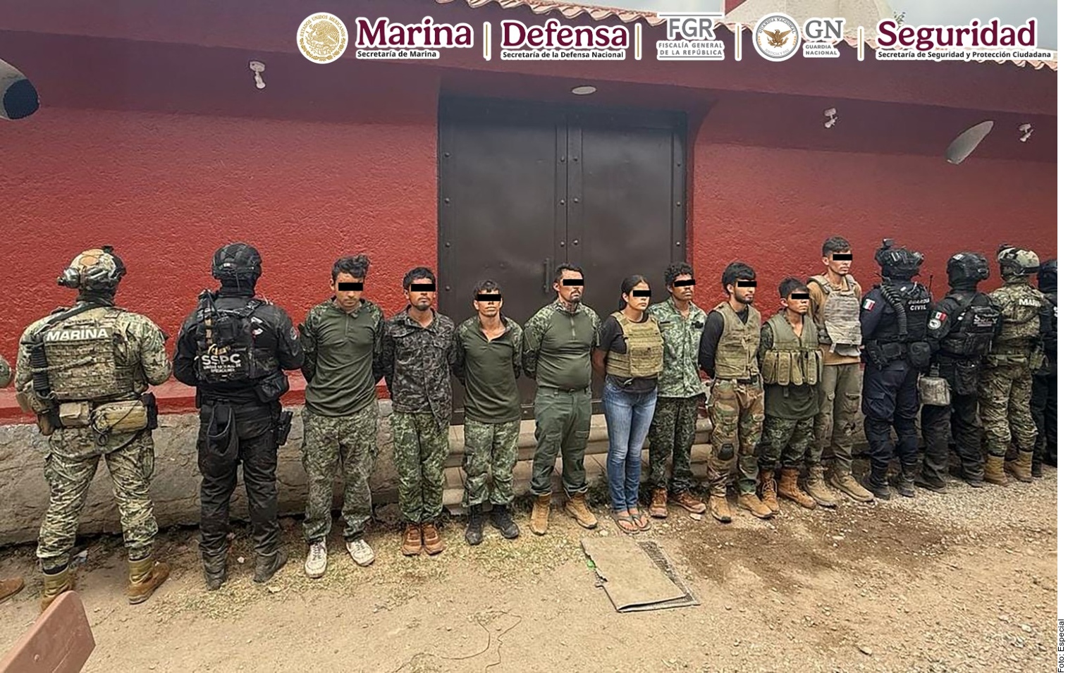 Las nueve personas detenidas formaban parte de un brazo armado integrado por mexicanos y ex militares colombianos, vinculados a dicha organización delictiva.