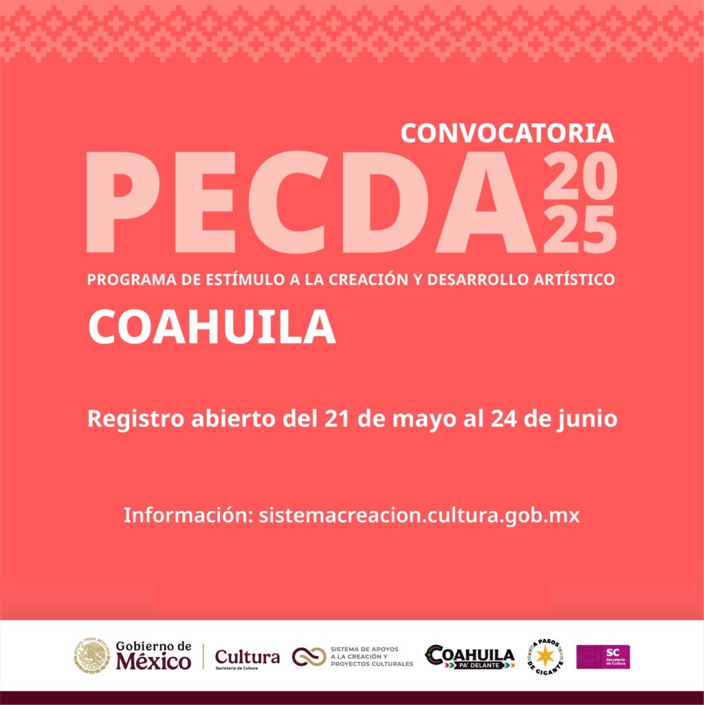 Con el objetivo de fortalecer el quehacer artístico y cultural en la entidad, el Gobierno del Estado de Coahuila de Zaragoza, a través de la Secretaría de Cultura, en coordinación con la Secretaría de Cultura del Gobierno de México mediante el Sistema de Apoyos a la Creación y a Proyectos Culturales, lanza la convocatoria del Programa de Estímulo a la Creación y al Desarrollo Artístico (PECDA) Coahuila 2025.