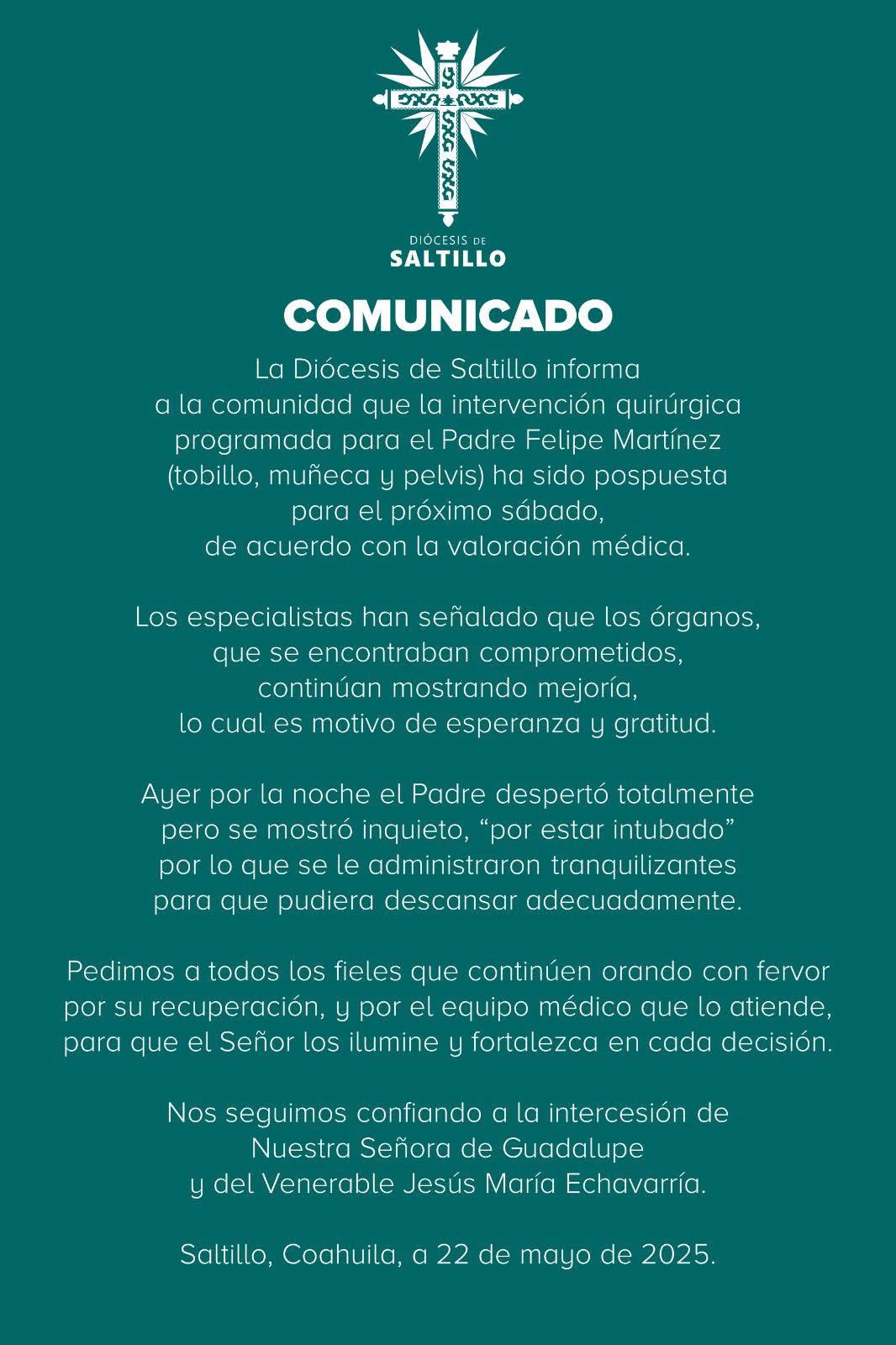 Posponen cirugía del padre Felipe Martínez; su salud muestra mejoría