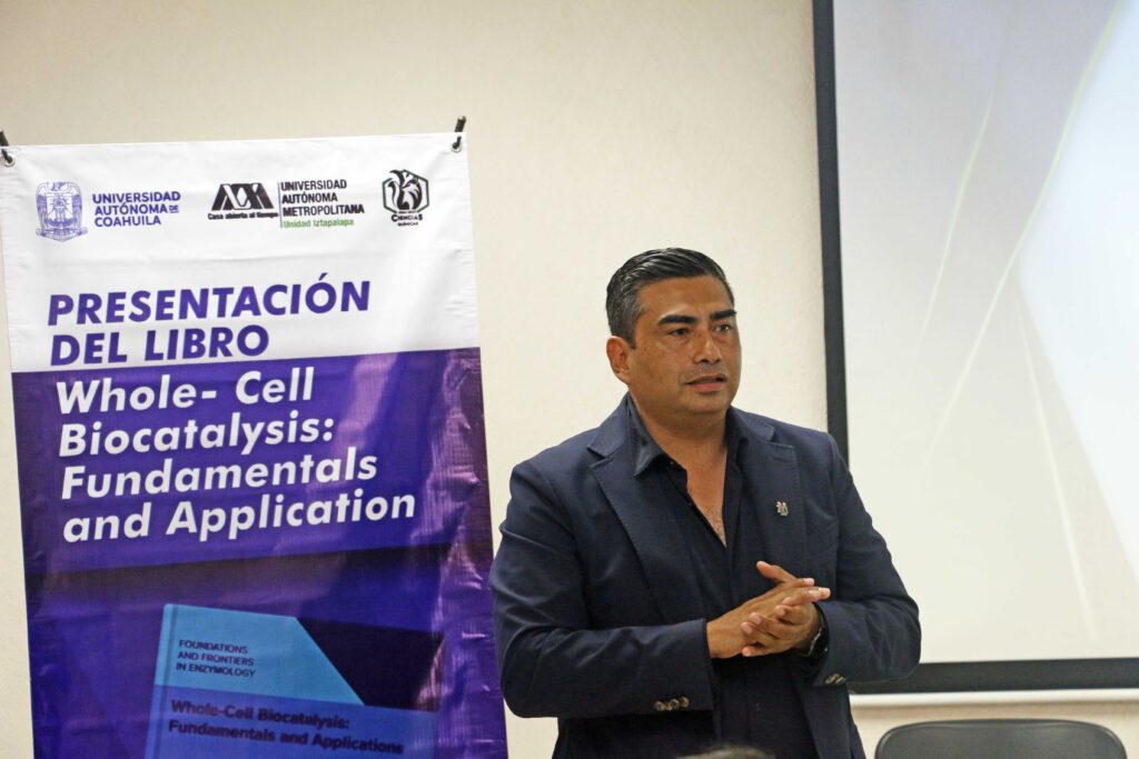 La Universidad Autónoma de Coahuila, a través de la Facultad de Ciencias Químicas (FCQ) y en colaboración con el Departamento de Biotecnología de la Universidad Autónoma Metropolitana (UAM) Unidad Iztapalapa, presentó el libro “Biocatálisis de células completas: fundamentos y aplicaciones”, una obra especializada en el campo de la Biotecnología que destaca los avances y aplicaciones de la biocatálisis con células completas.