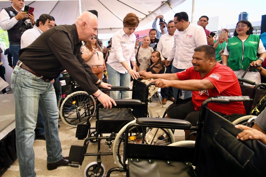 El alcalde y su esposa, Selina Bremer de Cepeda, presidenta honoraria del Sistema para el Desarrollo Integral de la Familia (DIF) Torreón, entregaron aparatos de movilidad a María Goretti Enríquez, José Luis Macías Castañeda, Fong Serrano, Estefana Almaraz, Edwin Franco Alvarado y María Engracia Núñez, vecinos del sector, con el objetivo de mejorar su calidad de vida.