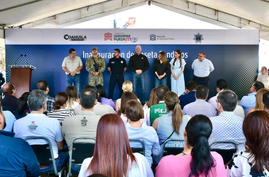 Torreón, Coahuila.- El alcalde Román Alberto Cepeda González inauguró este jueves una caseta de vigilancia en el Fraccionamiento Residencial Senderos, la cual beneficiará a más de 9 mil habitantes de seis fraccionamientos de la zona norte de la ciudad.