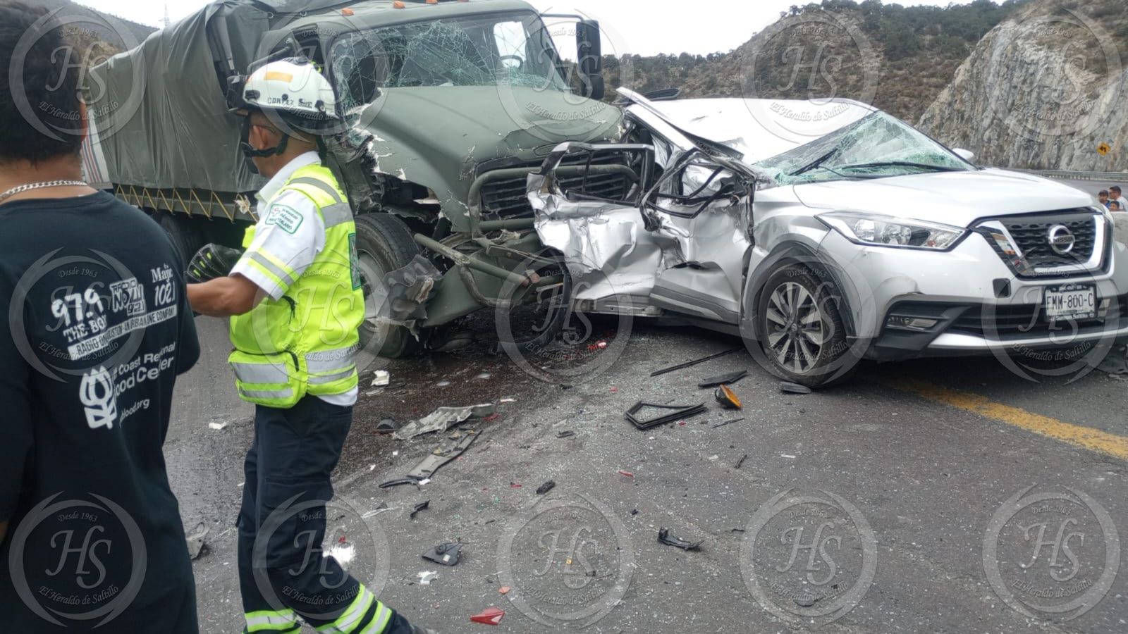 En el lamentable percance, una mujer que viajaba en una camioneta particular falleció de manera instantánea debido a la fuerza del impacto. Otras dos personas resultaron con diversas lesiones y fueron trasladadas a hospitales en la ciudad de Saltillo, donde reciben atención médica.
