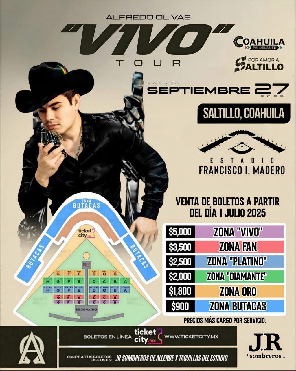 También se podrán adquirir boletos físicos en JR Sombreros sucursal Allende y taquillas del estadio.