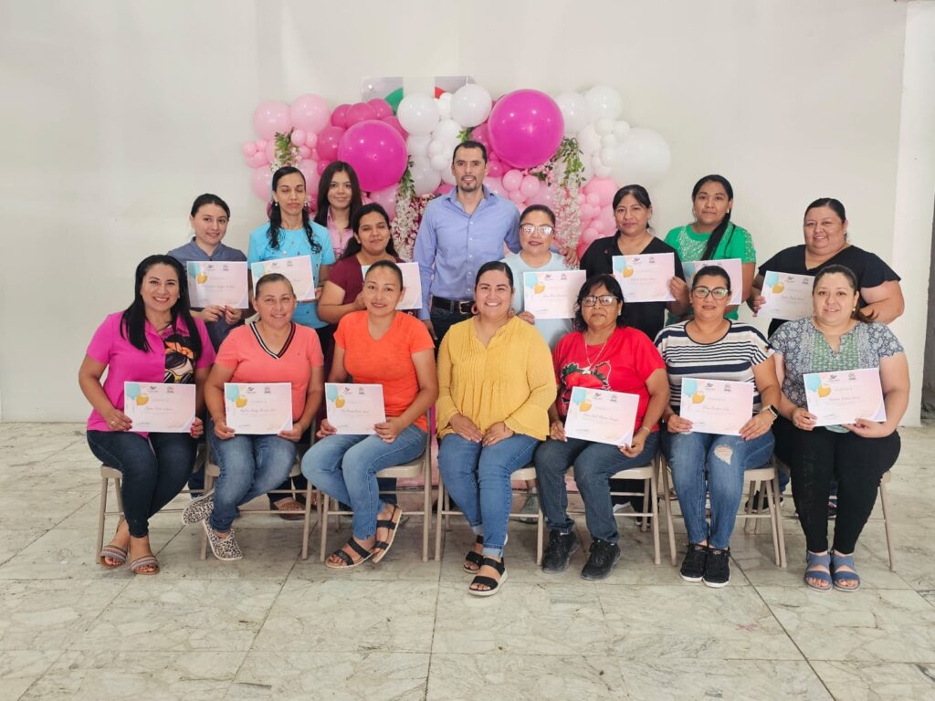 En esta ocasión, se llevó a cabo un curso gratuito de decoración con globos nivel básico, el cual constó de una sesión teórica y cinco prácticas. La capacitación fue impartida por la reconocida decoradora Yecika Pérez Arredondo y contó con la participación de 60 mujeres de los tres municipios.