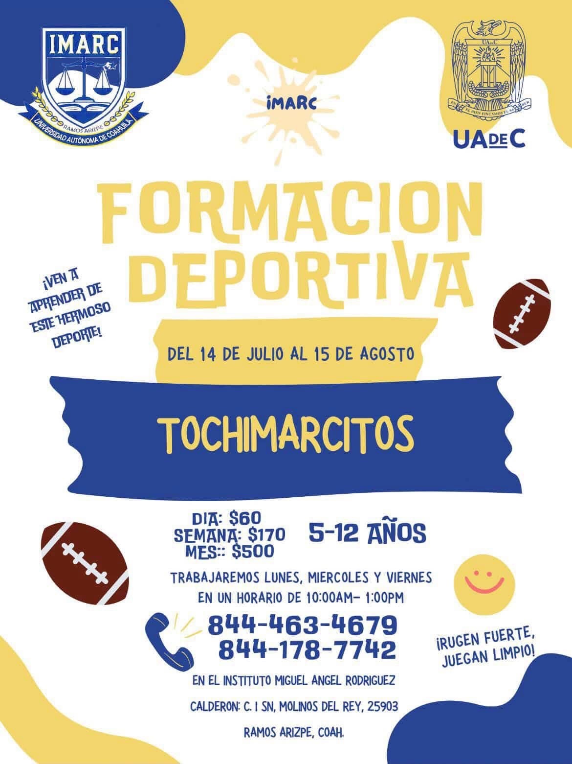 El Instituto Miguel Ángel Rodríguez Calderón (IMARC) de Ramos Arizpe lanzó su programa de formación deportiva infantil “Tochimarcitos”, una actividad veraniega enfocada en enseñar los fundamentos del tochito bandera a niñas y niños de entre 5 y 12 años.