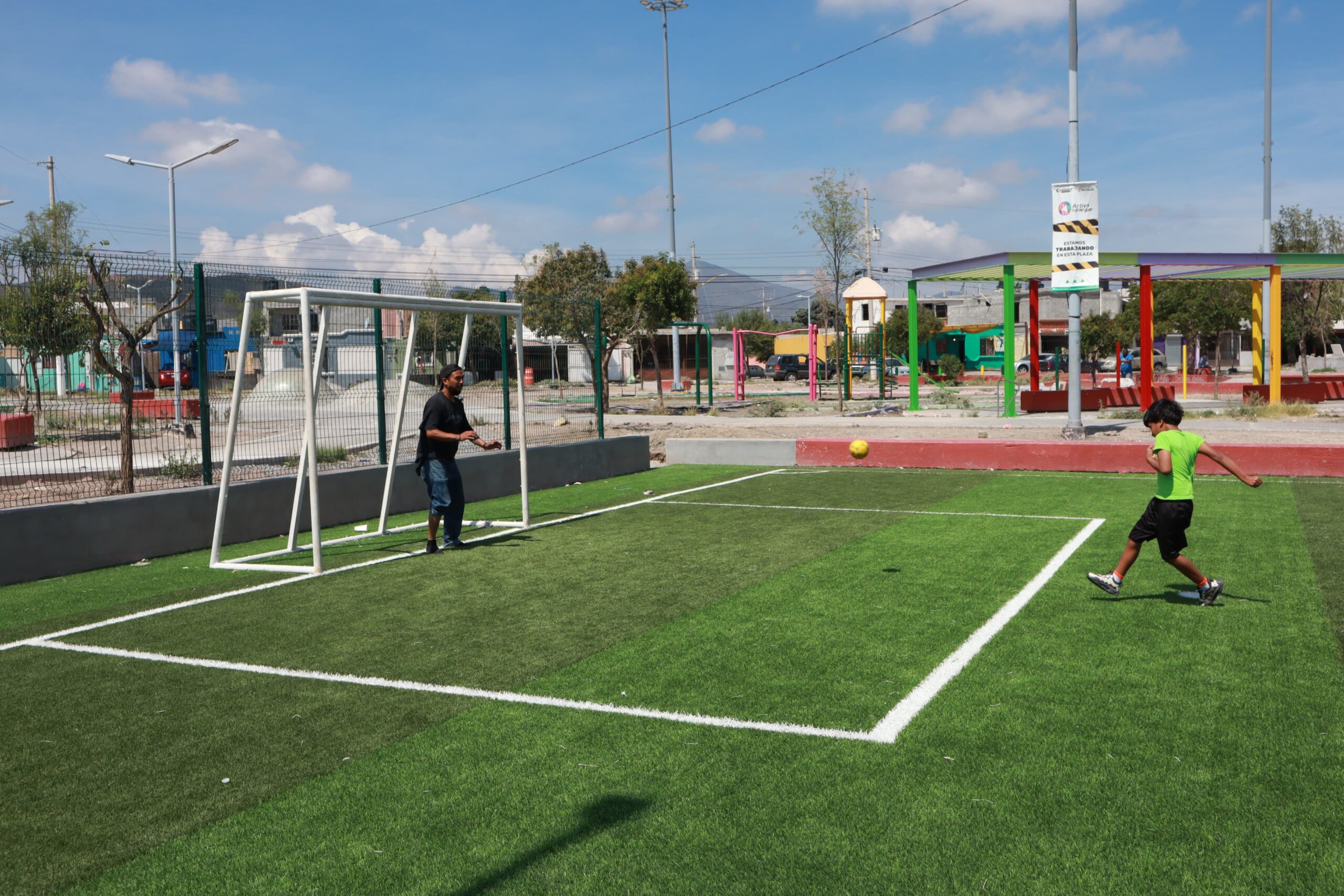 Dicha plaza ubicada entre la calle San Esteban y el bulevar Museo del Desierto, el Gobierno de Saltillo lleva a cabo una remodelación total de las dos canchas deportivas, así como la instalación de pasto sintético de alta calidad y sus porterías.