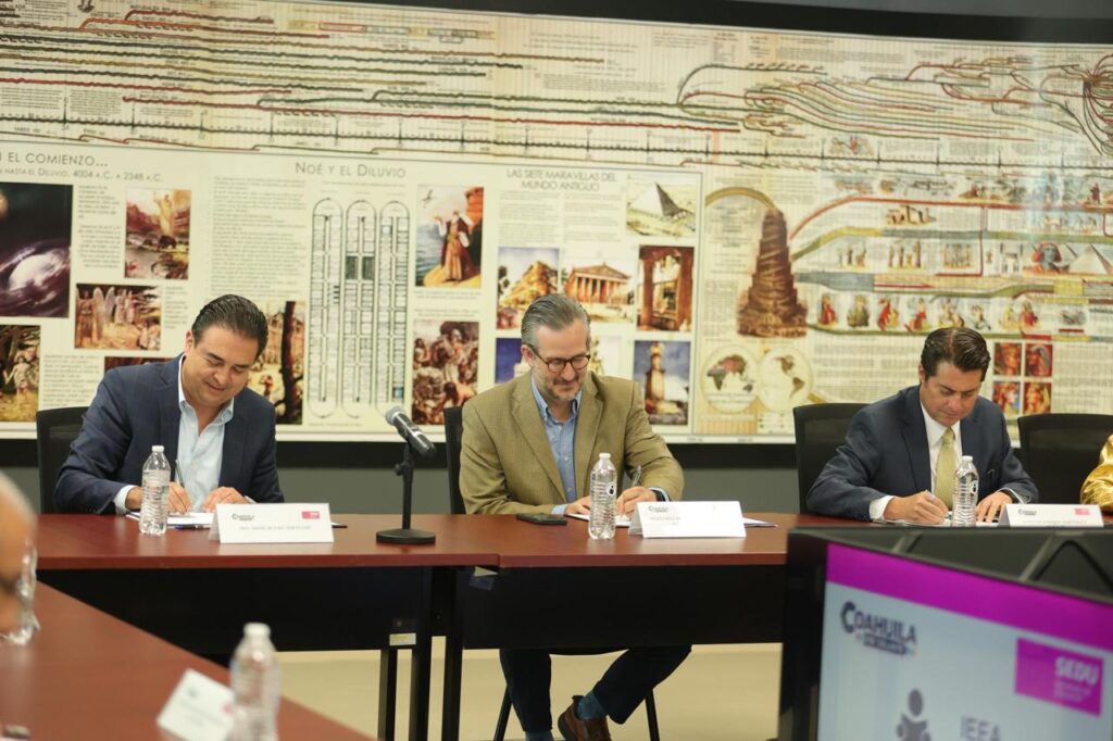 Coahuila reafirma su compromiso con la educación y la inclusión social con la firma de un importante Convenio de Colaboración entre la Secretaría de Educación, el Instituto Estatal de Educación para Adultos (IEEA) y los Institutos Tecnológicos de Estudios Superiores de Monclova, Región Carbonífera, Múzquiz, Acuña y San Pedro de las Colonias.