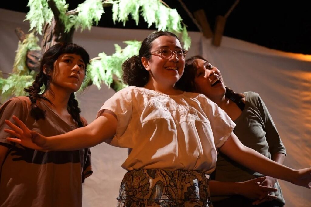 “La voz de la Tierra Roja”, bajo la dirección de Karina Carrasco y la producción de Luciérnaga Teatro de Torreón, tiene una temática dirigida a los adolescentes en la que los personajes son niños queriendo ser adultos, como luego se juega, y en esta búsqueda de romper con las costumbres que ya existen y buscar el propio camino donde encuentran el amor entre hermanas.
