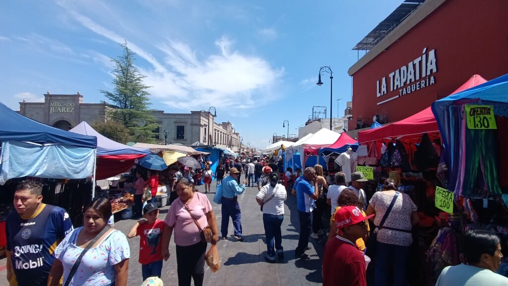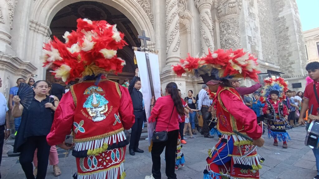 A las afueras del espacio religioso, las voces bajas de los feligreses se van perdiendo entre tambores, llega una danza de matlachines, sus penachos multicolor y la alegría con la que danzan atrae a la multitud, mientras las calles que redondean a la Catedral se llenan de vida con la verbena popular en la que más de uno ya se echó sus gorditas, champurrados y hasta compró algún detalle para sus seres queridos que se quedaron en casa o están trabajando; entonces el Santo Cristo también se vuelve bendición para los comerciantes que día a día trabajan para llevar el sustento a sus familias.