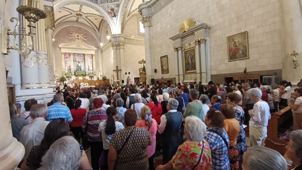 Transcurren los minutos de la mañana de este miércoles, hay misa y el padre oficiante dice “dense fraternalmente un saludo de paz” y de pronto la paz no es solo una utopía, se vuelve real desde quienes estrechan sus manos un momento, teniendo como testigo de ese signo de comunión al Santo Cristo.