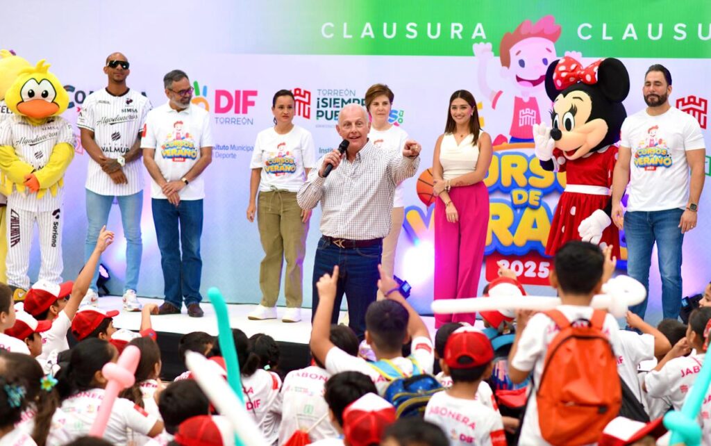 Torreón, Coahuila.- El alcalde Román Alberto Cepeda González clausuró la mañana de este jueves, los cursos de verano de la Administración Municipal de Torreón que contaron con la participación de más de mil niños en todas las actividades programadas en coordinación con el DIF Torreón y otras dependencias.