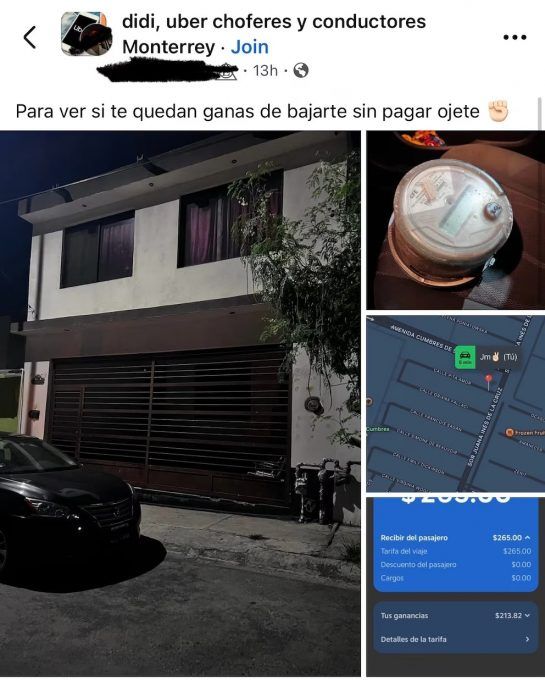 Nuevo León, México.- Fue a través de un grupo de Facebook con temática de choferes de Uber y Didi ubicado en Monterrey, Nuevo León, donde un conductor denunció que un pasajero no pago su viaje de 265 pesos, motivo por el cual decidió vengarse y robar su medidor de luz de la Comisión Federal de Electricidad (CFE).