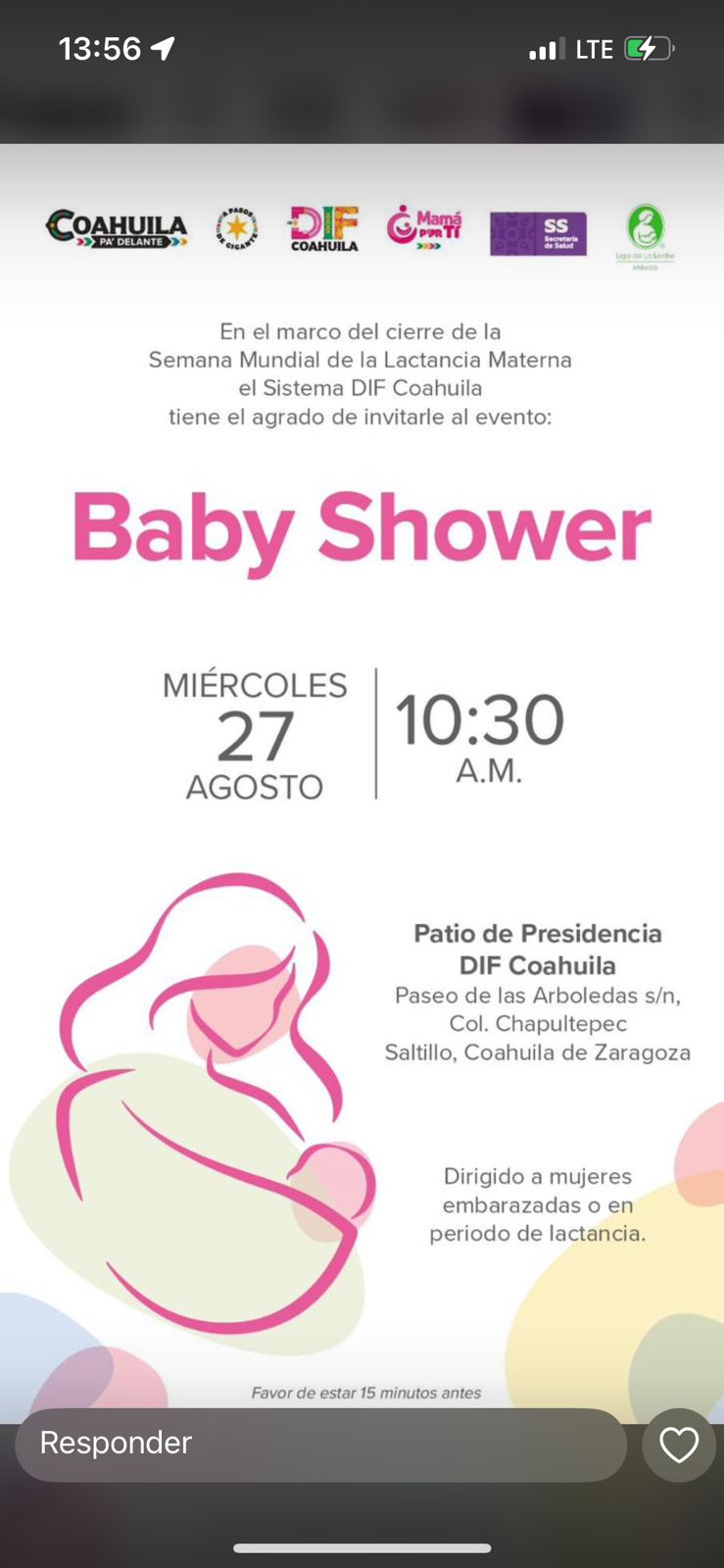 En el marco del cierre de la Semana Mundial de la Lactancia Materna, el DIF Coahuila dio a conocer que el próximo miércoles 27 de agosto, se llevará a cabo en Saltillo un baby shower dirigido a mujeres embarazadas y en período de lactancia de esta ciudad, las que podrán asistir de manea totalmente gratuita.