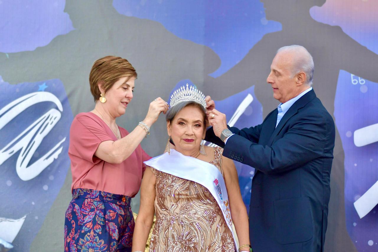 Román Cepeda corona a la reina y a las princesas de los adultos mayores de Torreón