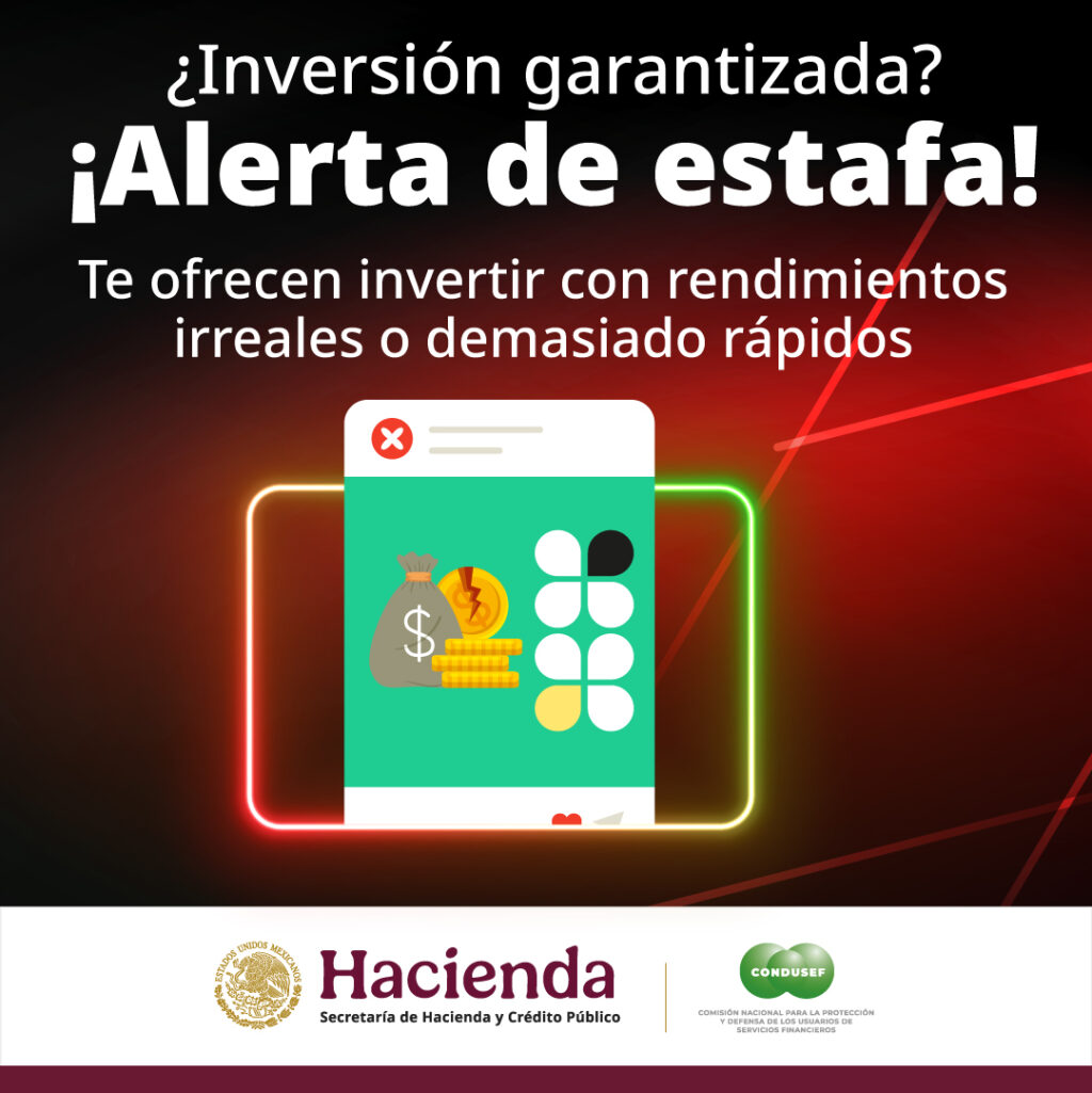 • Desconfía de cualquier promesa de dinero fácil o rendimientos garantizados.