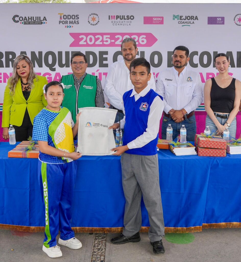 En representación del gobernador Manolo Jiménez Salinas, asistió el secretario de Finanzas del Estado, José Antonio Gutiérrez Rodríguez, quien junto al alcalde Tomás Gutiérrez Merino y autoridades educativas entregaron útiles y libros de texto gratuitos, refrendando el compromiso del Gobierno del Estado con la educación y con las familias de Ramos Arizpe.