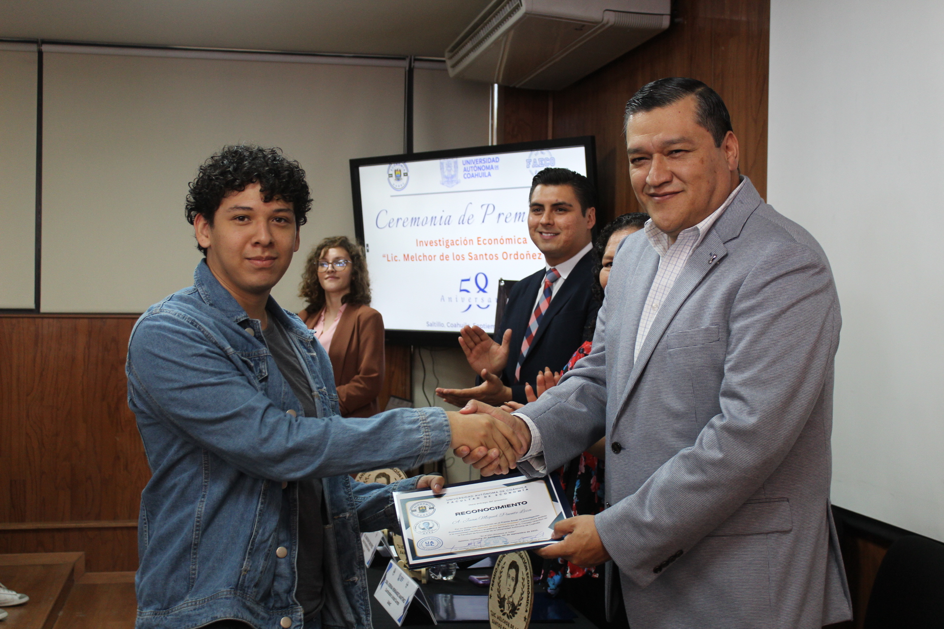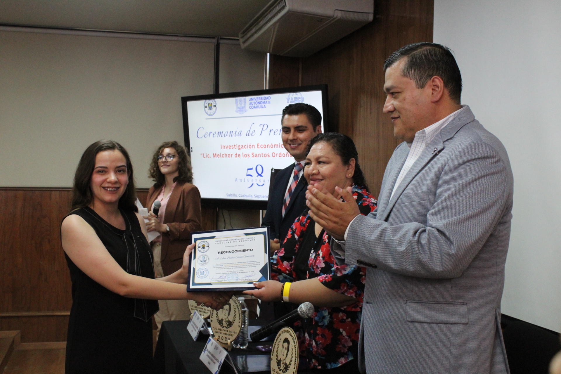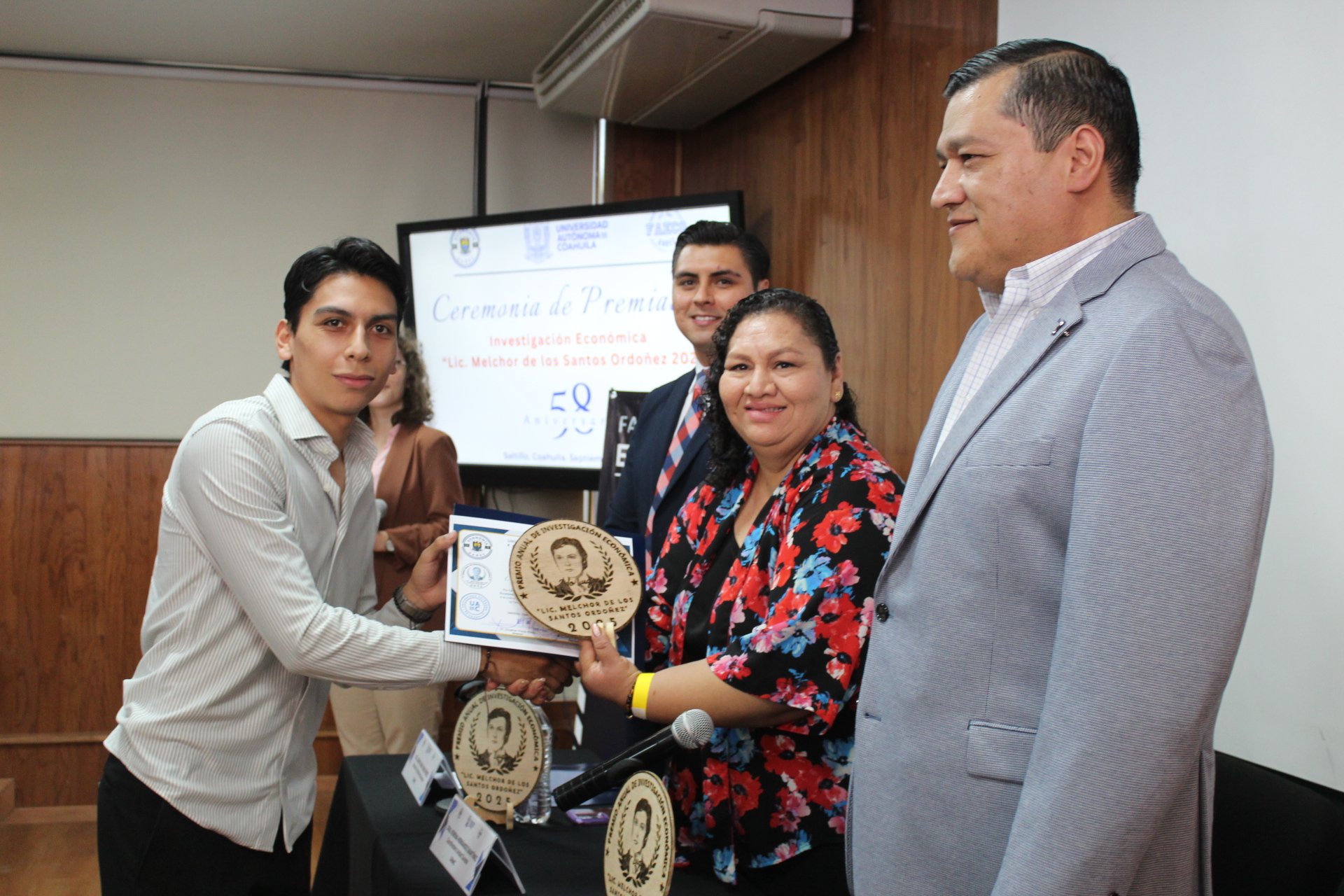 La mañana de este martes, en la Facultad de Economía de la Universidad Autónoma de Coahuila (UA de C), con sede en la Unidad Camporredondo de Saltillo, se entregó el premio «Lic. Melchor de los Santos Ordóñez» a estudiantes y docentes destacados por sus investigaciones sobre problemas en materia económica en México y su resolución