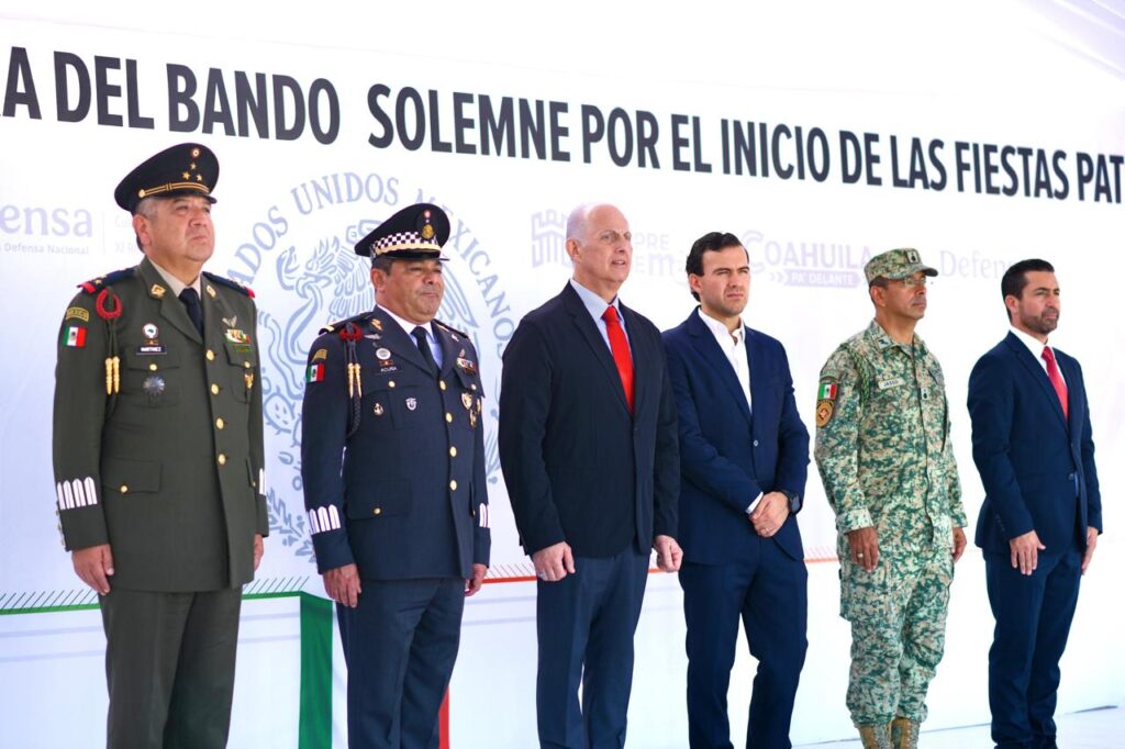 Durante la ceremonia de Izamiento a la Bandera y Lectura del Bando Solemne por el Inicio de las fiestas patrias, estuvo Gabriel Elizondo Pérez, coordinador general de Mejora Coahuila, en representación del gobernador Manolo Jiménez Salinas, además, el Alcalde estuvo acompañado de autoridades municipales, estatales y militares.