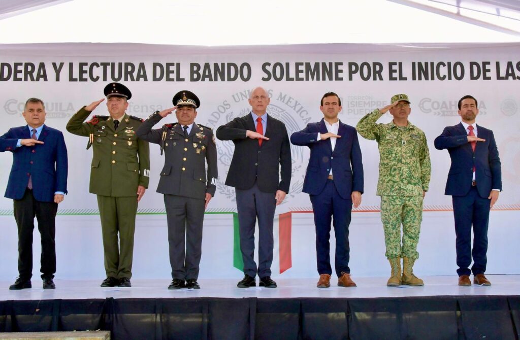 En la ceremonia, se contó con la participación de la Banda de Guerra y Banda de Música de la XI Región Militar, y estuvieron presentes el General Brigadier de Guardia Nacional DEM Francisco Acuña Díaz, coordinador estatal de la Guardia Nacional; Gral. Brigadier DE.M. Edilberto Jasso Godoy, comandante del Mando Especial de la Laguna; Coronel de Infantería EM Jesús Alberto Martínez Mendoza, comandante del 33 Batallón de Infantería; y Luis Jorge Cuerda Serna, primer regidor del Ayuntamiento. (El Heraldo de Saltillo)