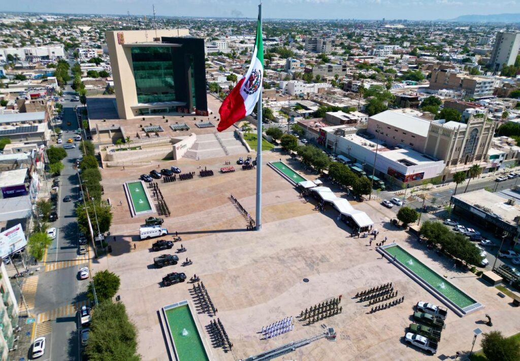 Torreón, Coahuila.- El alcalde Román Alberto Cepeda González, presidió este lunes la ceremonia de Izamiento de la Bandera Nacional en la explanada de la Plaza Mayor, en el marco del inicio de las fiestas patrias por la Independencia de México y del 118 aniversario de la fundación de la ciudad de Torreón.