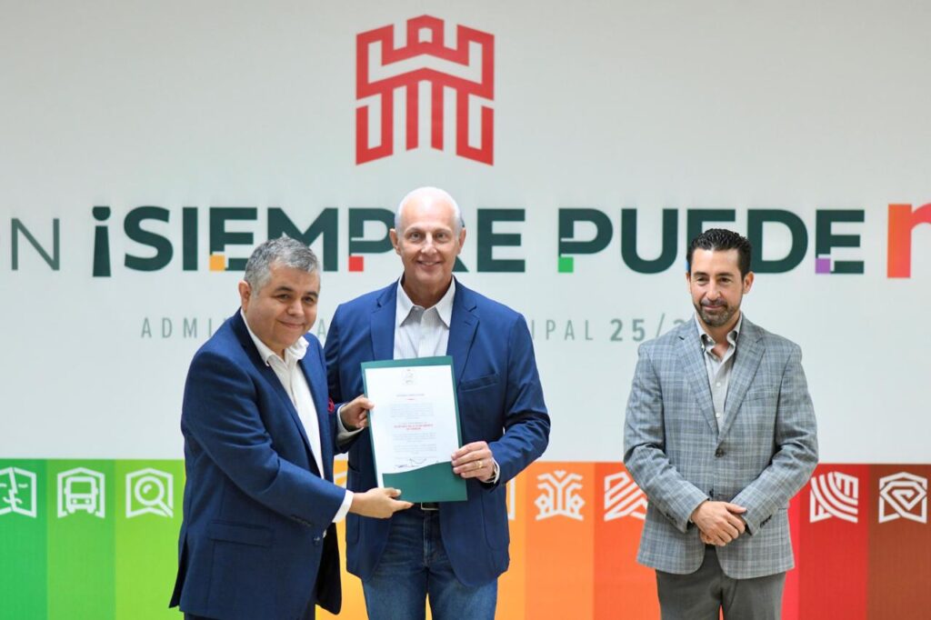 Torreón, Coahuila.- La mañana del martes, el alcalde Román Alberto Cepeda González entregó los nombramientos de los nuevos integrantes del Gabinete Municipal que el pasado viernes fueron designados por el Cabildo de Torreón: Eduardo Olmos Castro, secretario del Ayuntamiento, Javier Lechuga Jiménez, Tesorero Municipal, y Óscar Luján Fernández, Contralor Municipal.