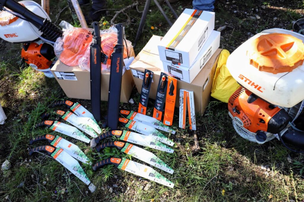 El suministro incluye indumentaria de seguridad, herramientas y accesorios que permiten a los brigadistas desempeñar su labor bajo condiciones más seguras y eficientes. Entre el material destacan prendas de protección para campo, implementos contra cortes, calzado especializado, cascos, guantes, botiquines de primeros auxilios, así como equipos de aplicación para productos biológicos y químicos. A ello se suma herramienta forestal, fumigadoras, motosierras, machetes, hachas, sistemas de geolocalización y dispositivos digitales de campo.