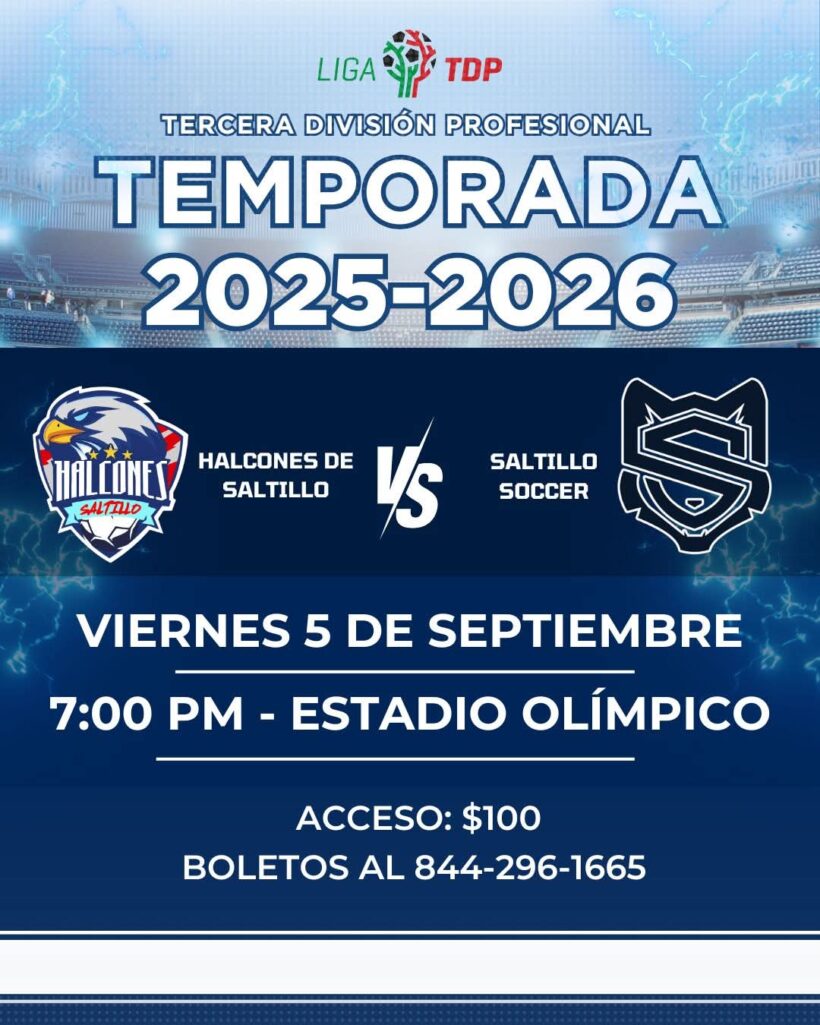 Este próximo viernes a las 7 de la tarde, el Estadio Olímpico recibirá a los Halcones de Saltillo y Saltillo Soccer, equipos que protagonizarán el llamado “clásico saltillense”, dentro del arranque de la Temporada 2025 de la Liga TDP.
