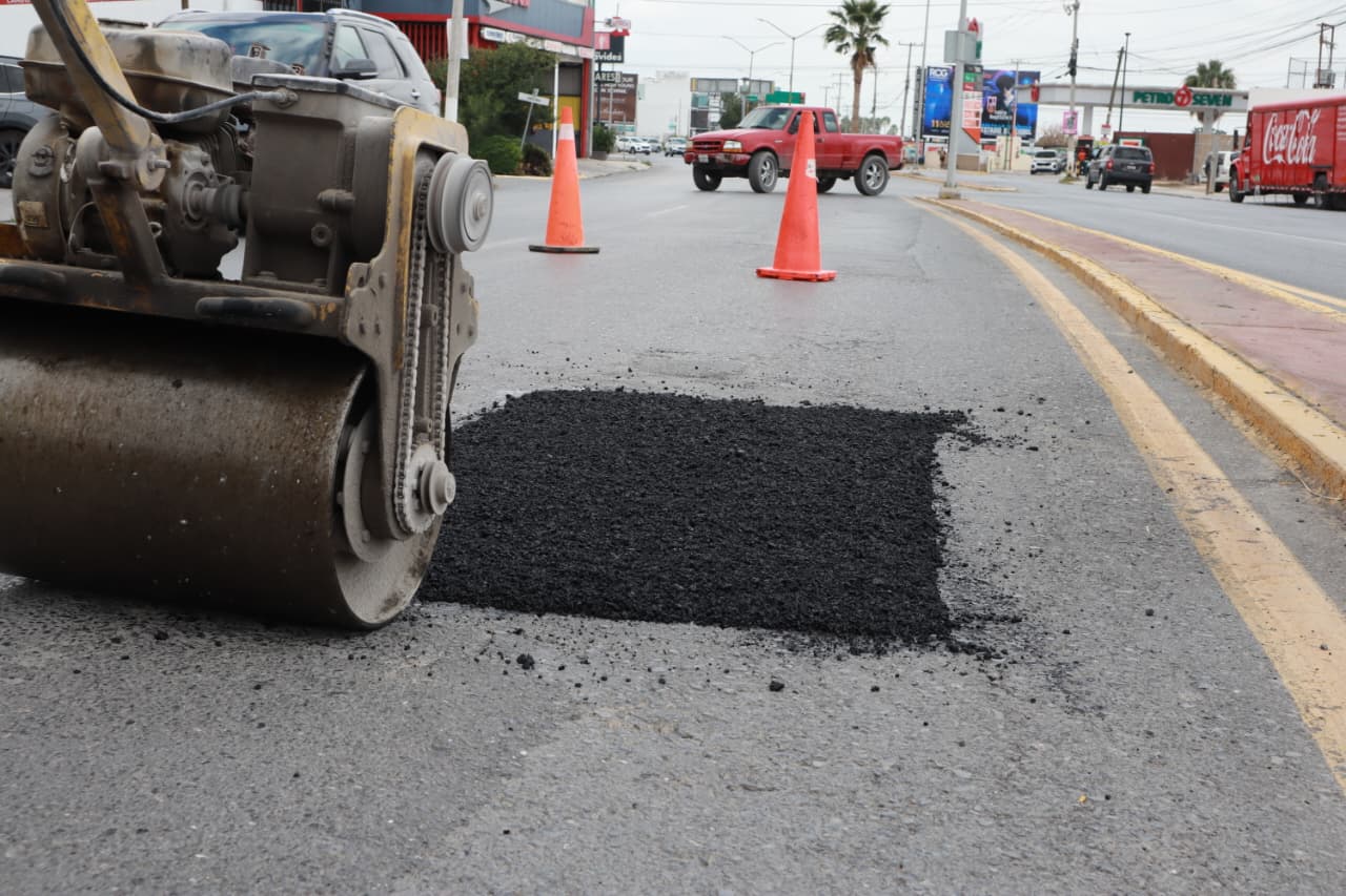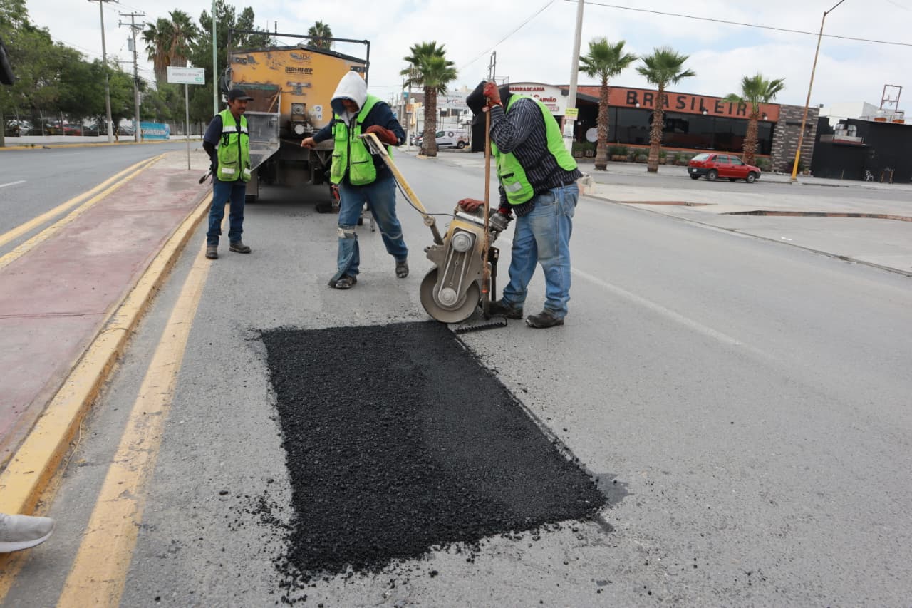 Con el apoyo del gobernador Manolo Jiménez Salinas, este miércoles, brigadas municipales trabajaron en la reparación de la carpeta asfáltica en el bulevar Teodoro Sánchez Dávila, al sur de Saltillo.