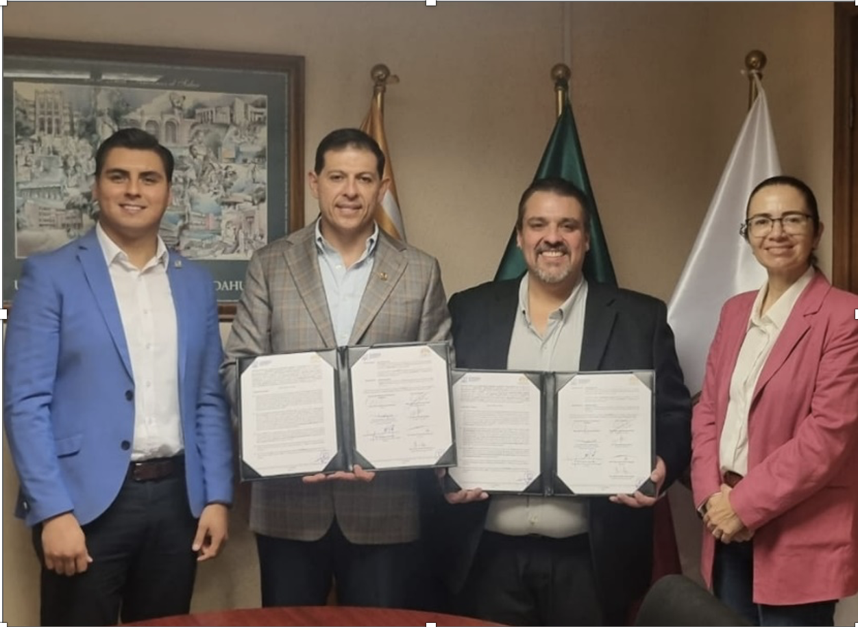 En la celebración del convenio participaron, por parte de la Universidad Autónoma de Coahuila, la Dra. Karla Patricia Valdés García, coordinadora general de Vinculación e Innovación Productiva; el Dr. Jonathan Flores Pérez, director de la Facultad de Economía; los maestros José María González Lara, M.C. Felipe de Jesús García Alvarado, M.C. Alan Raymundo Rivera Rivera; además de la Dra. Hada Melissa Sáenz Vela.