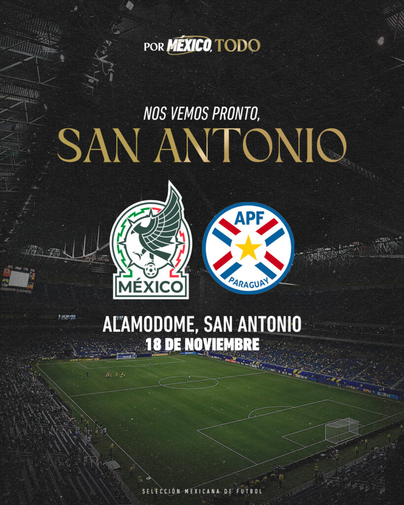 Ciudad de México.- La Selección Mexicana oficializó el partido contra Paraguay el próximo 18 de noviembre en San Antonio.