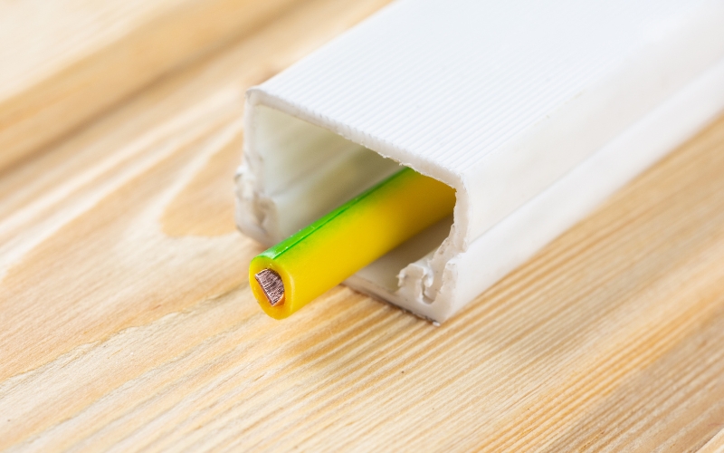 Elige canaletas con retardante de flama y de tamaño adecuado para el número de conductores que alojarán, ya que un exceso de cables puede provocar sobrecalentamiento.