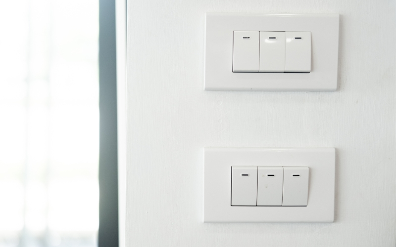 Los apagadores pueden ser sencillos, de escalera o de tres vías, según cómo quieras controlar las luces, ya sea desde un solo lugar o desde varios puntos.