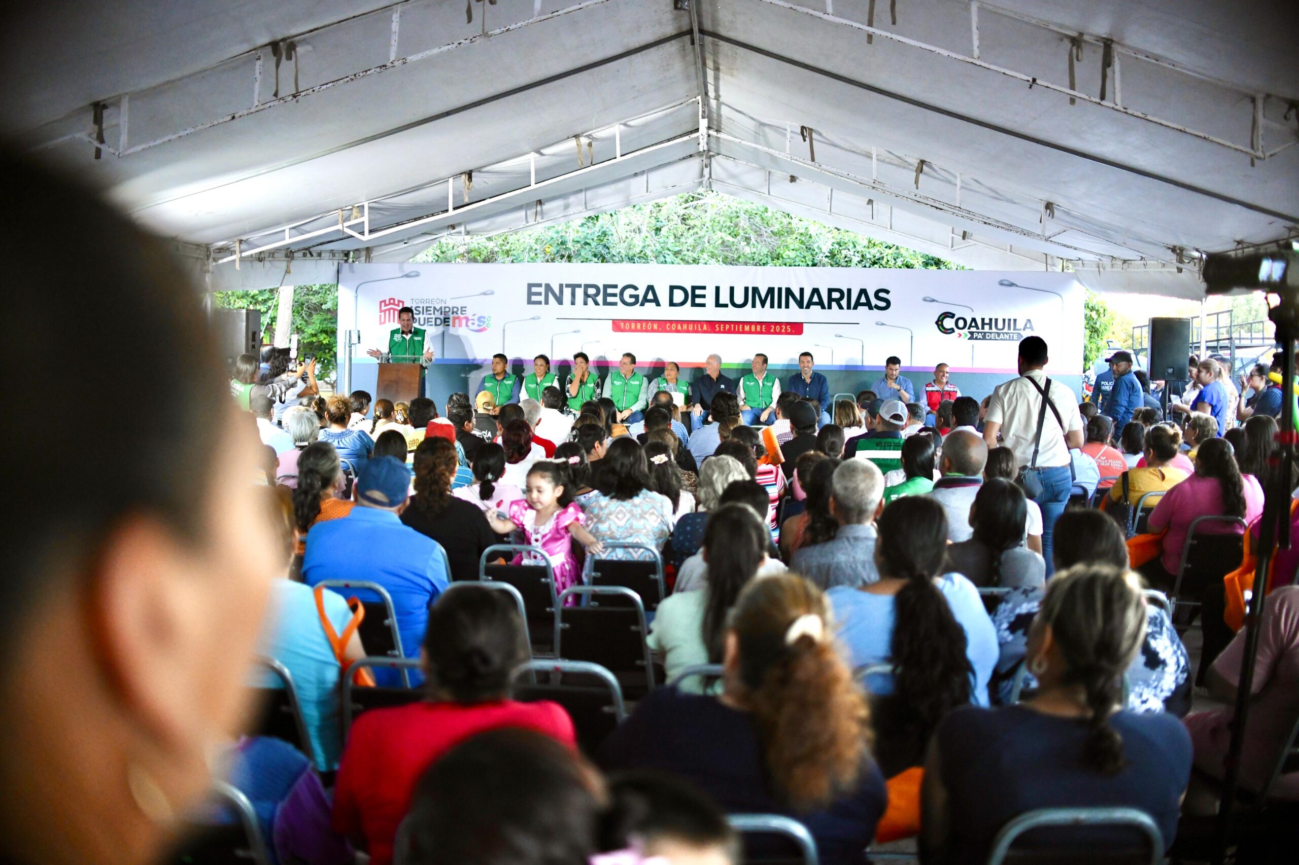 Román Cepeda entrega la modernización del alumbrado público en el ejido La Palma