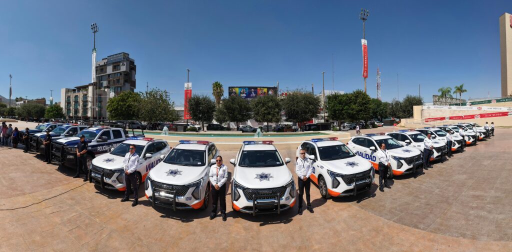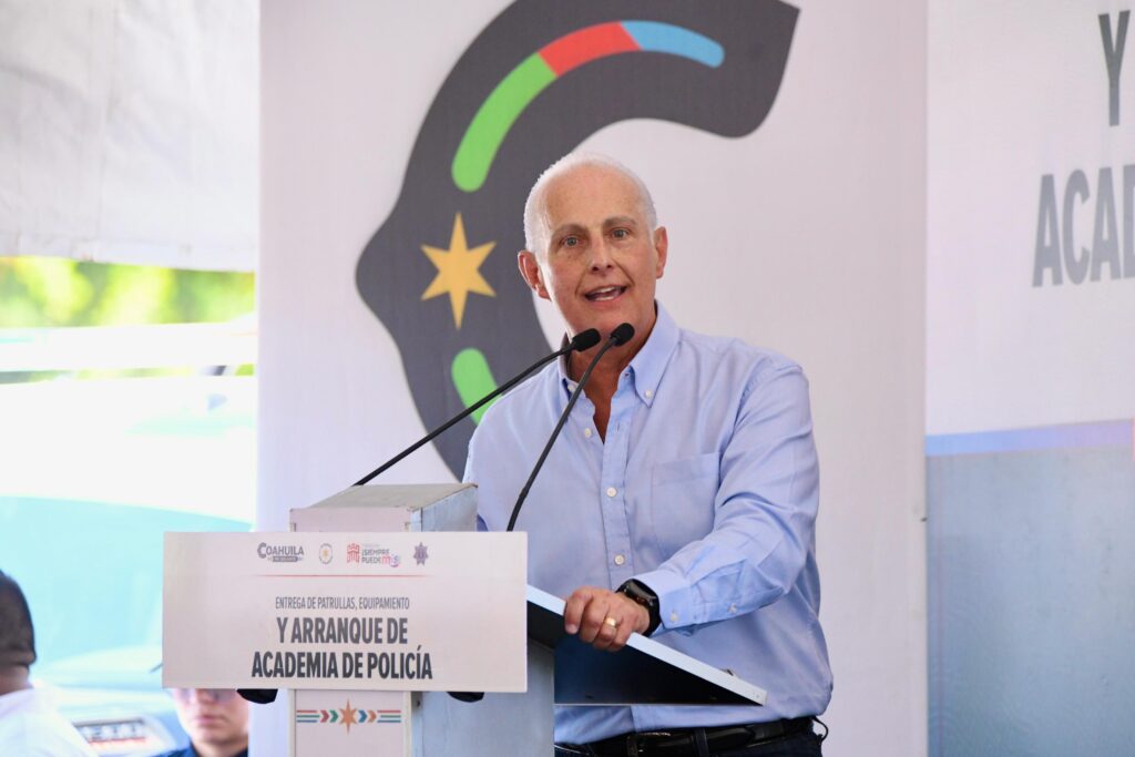El alcalde además resaltó que el gobernador Manolo Jiménez es el mejor evaluado y Coahuila la segunda entidad más segura del país, y afirmó que la entrega de patrullas, equipamiento y uniformes es resultado de la coordinación entre Estado y Municipio.